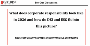 Our first Ripped from the Headlines Salon of the year focused on where corporate responsibility and sustainability trends would be going in 2026 in a post-DEI post-ESG acronym world. I presented some recent relevant headlines involving both anti-DEI/ESG and pro DEI/-ESG stories as well as key developments and insights from various sources including regulatory actions and industry responses.