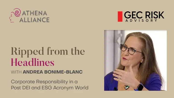 In our first Ripped from the Headlines Salon of the year, Andrea Bonime-Blanc and Athena members explored where corporate responsibility and sustainability are headed in 2026 beyond “DEI” and “ESG.”