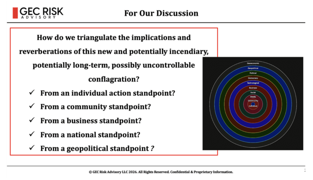 I presented news and analysis from what I consider to be reliable sources – the Economist, the Financial Times, The New York Times, the Council on Foreign Relations, CSIS, the World Economic Forum – focused on the geopolitical, geo-economic, social, technological, and business implications of the U.S. and Israeli strikes on Iran.