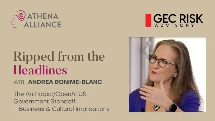 This month, Andrea Bonime-Blanc brought the Anthropic-OpenAI-Pentagon dispute to the Ripped From the Headlines Salon, unpacking its implications for AI governance, national security, and corporate responsibility. Members debated what this unprecedented standoff means for the future of AI regulation.