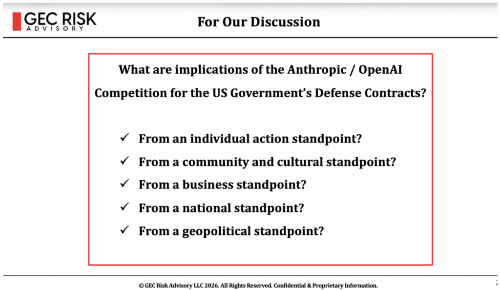 Our latest monthly Athena Alliance Ripped from the Headlines salon focused on discussing the implications of the Anthropic-OpenAI US Government Department of Defense or War (DOD) standoff, which was voted as the top topic for the month of April 2026.